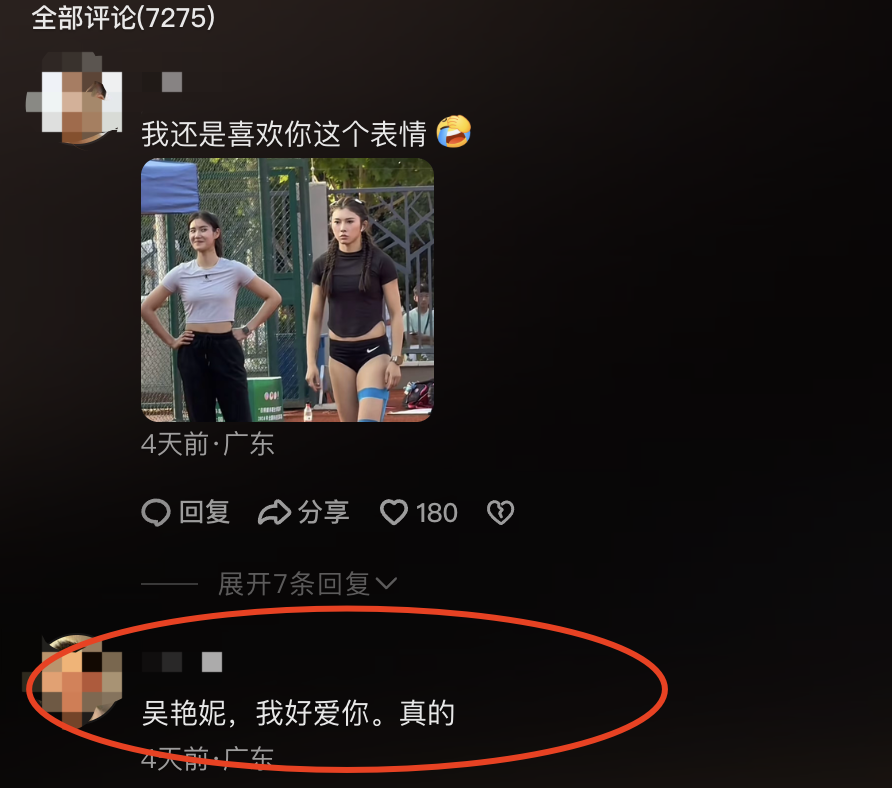 而在留言区,一位网友将夏思凝看成了吴艳妮:“吴艳妮,我好爱你。真的。”
